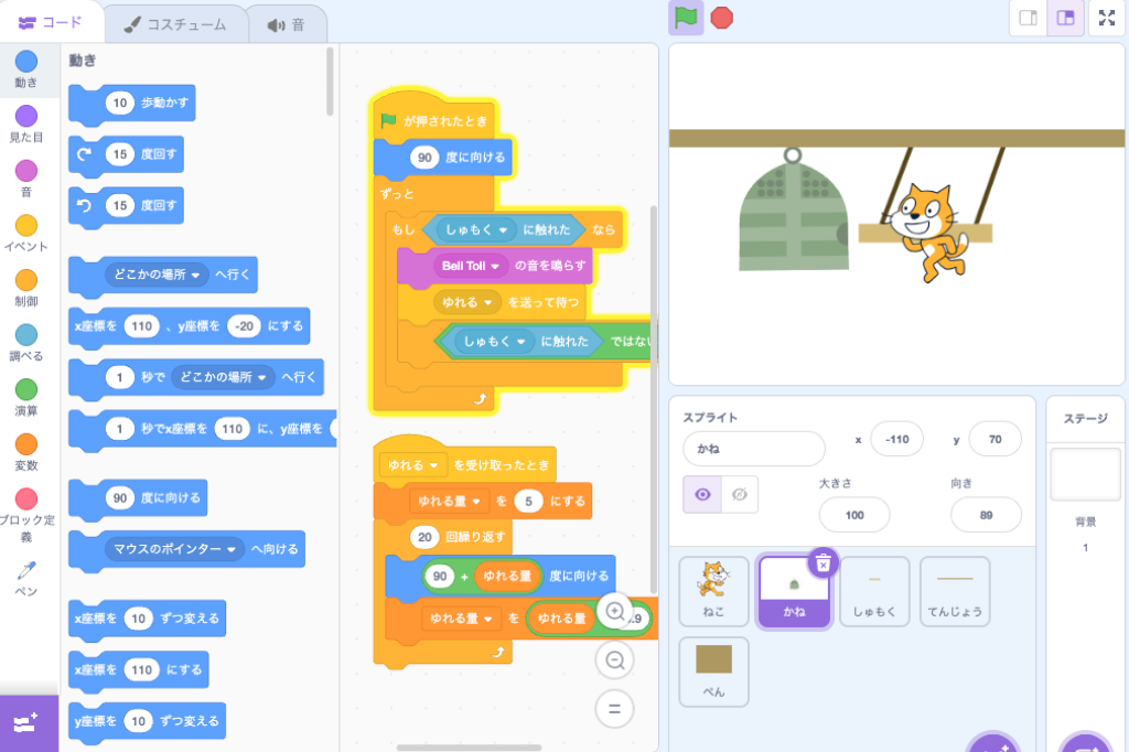 【Scratch】除夜の鐘 Scratch作例 X Facebook はてブ LINE コピー 2025.12.30 ネコが鐘をつくプログラムです。左右のキーでネコが歩きます Scratch 3.0に対応した書籍です[PR] リンク リンク リンク