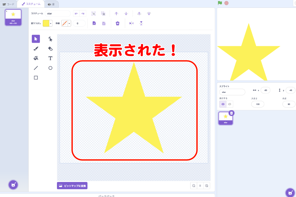 当然ながらScratchの画像エディタより機能が充実していて、複雑な図形を描きやすいです