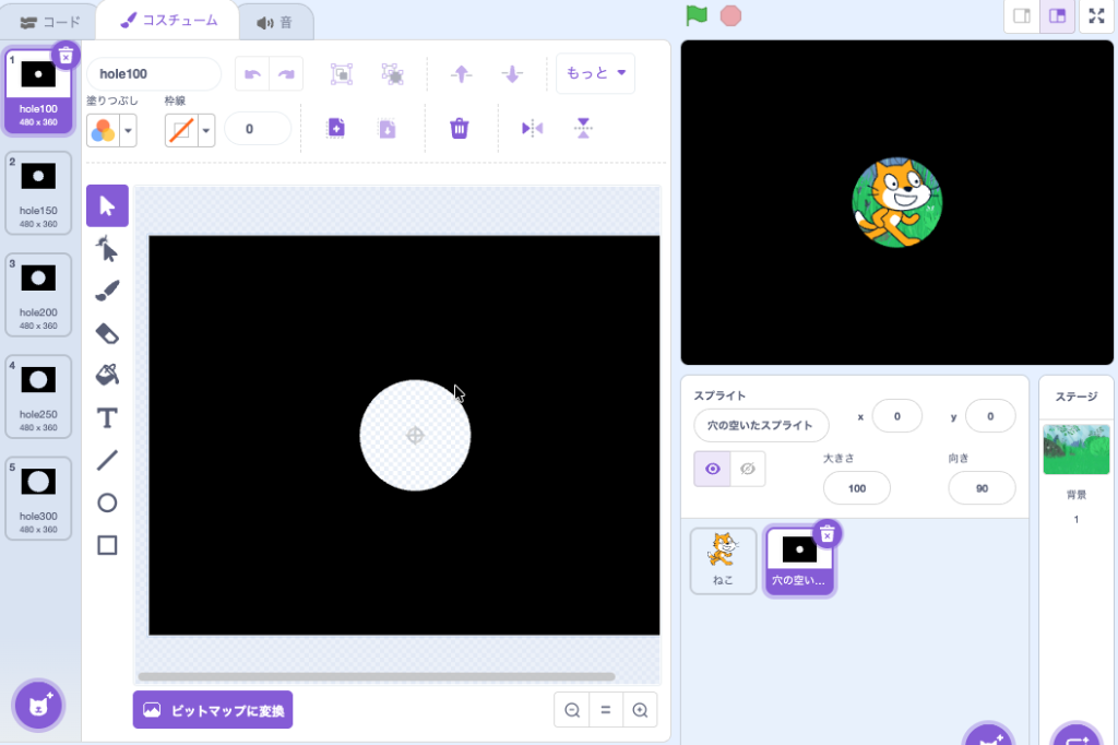 【Scratch素材】丸い穴の空いたスプライト