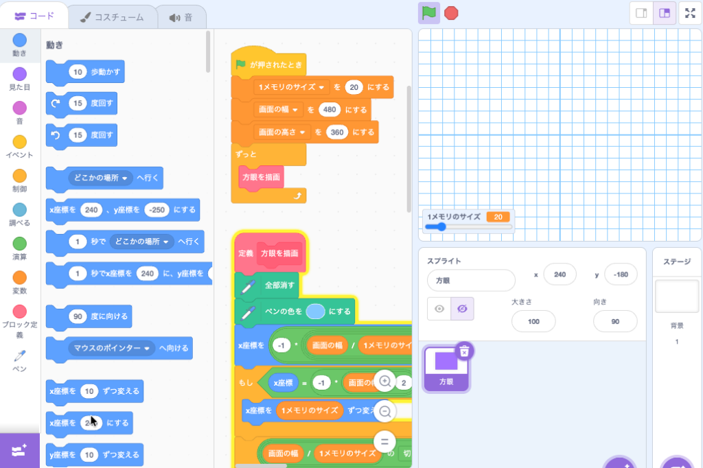 【既存の教科でプログラミング授業】中学1年生 数学「方眼を描く」 既存の教科でプログラミング授業 X Facebook はてブ LINE コピー 2025.12.24 グラフを書くことが多いので、ベースとなる方眼の描画部分だけのプログラムを作成しました1メモリのサイズを変更できます Scratch 3.0に対応した書籍です[PR] リンク リンク リンク